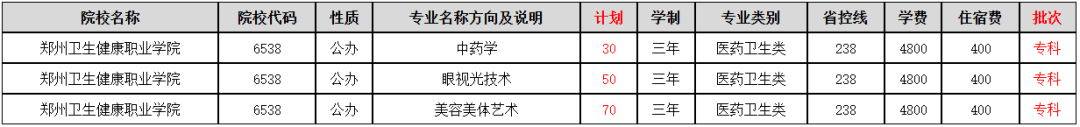 收费标准:按国家有关收费政策执行,严格依照收费标准。按照河南省发改委、教育厅、财政厅下发的文件规定,中药学、眼视光技术、美容美体艺术专业按照4800元/生/年的专业收费标准执行。住宿费执行标准:400元/生/年。