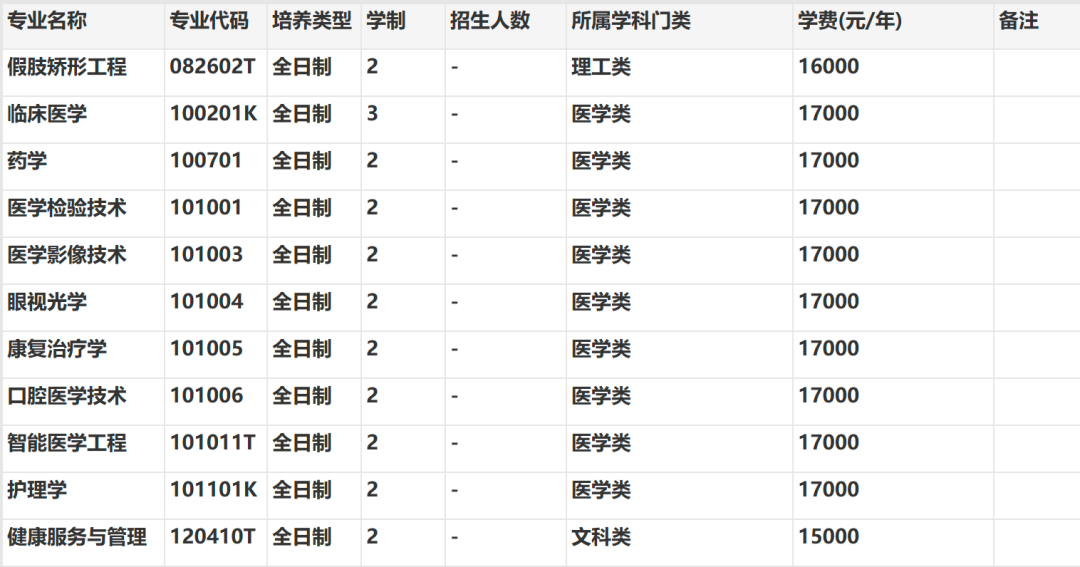 第二十一条 2026年专升本收费标准如下:临床医学、医学检验技术、医学影像技术、口腔医学技术、护理学、眼视光学、康复治疗学、药学、智能医学工程专业每生每年17000元,假肢矫形工程专业每生每年16000元,健康服务与管理专业每生每年15000元。