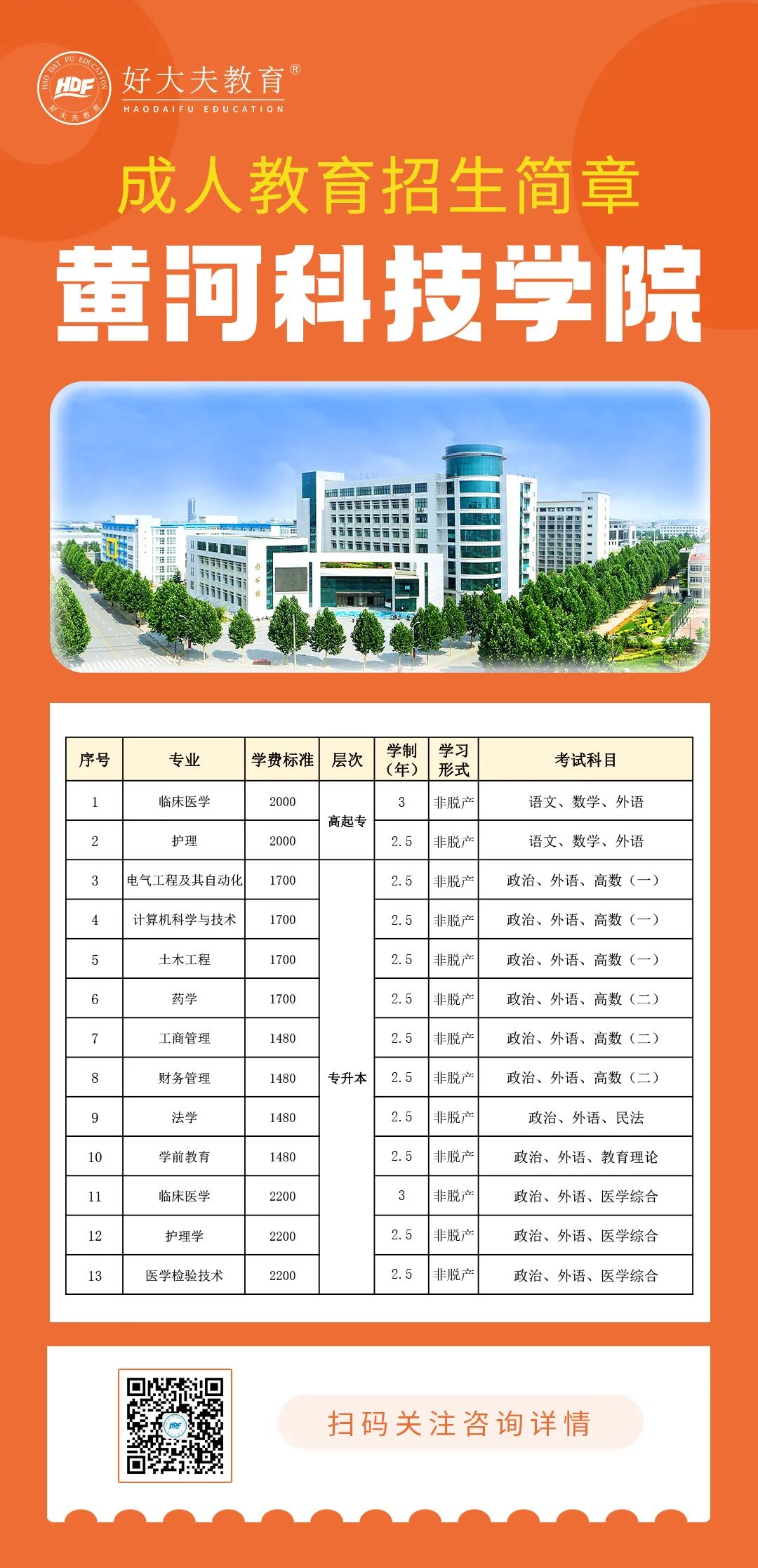 黄河科技学院建校于于1984年,在郑州市、济源市建有四个校区,黄河科技学院成人高等教育,涵盖理工、医学、财经、管理等学科门类。2025年,黄河科技学院将继续面向河南省范围内进行招生。开设高等学历继续教育高起专层次、专升本层次专业招生。
