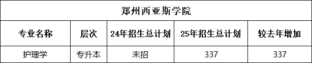 郑州西亚斯学院2025年专升本招生计划公布,有1个医学专业招生:护理学。